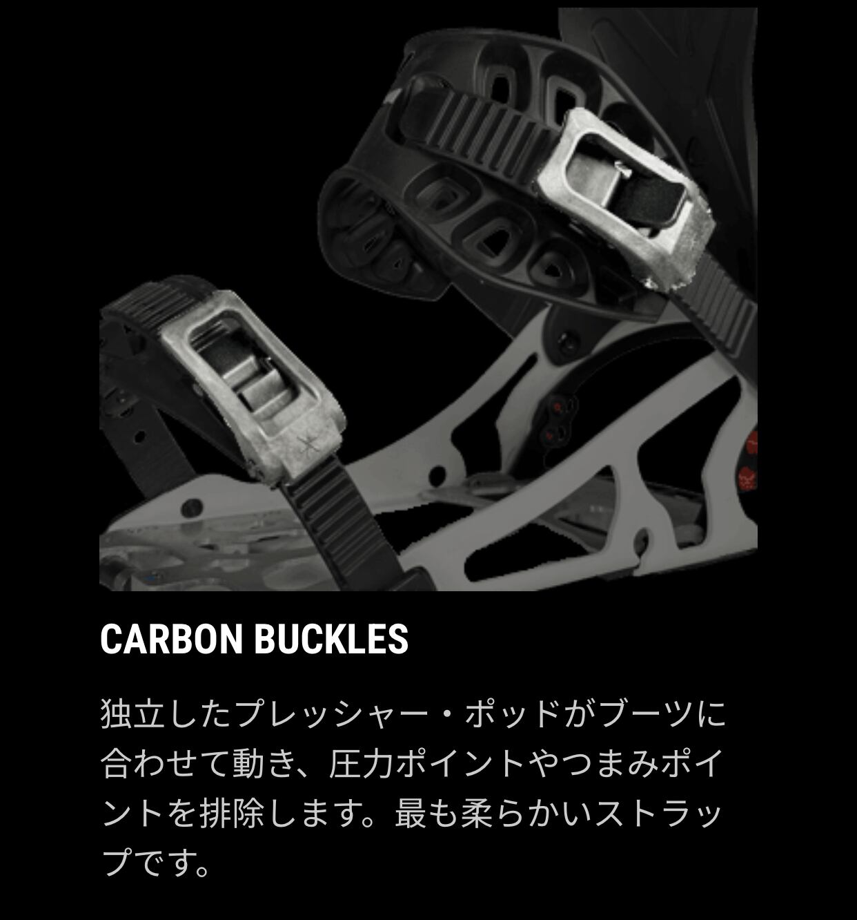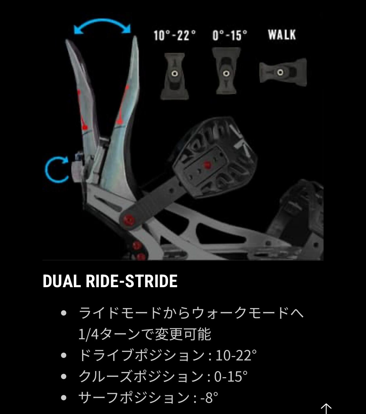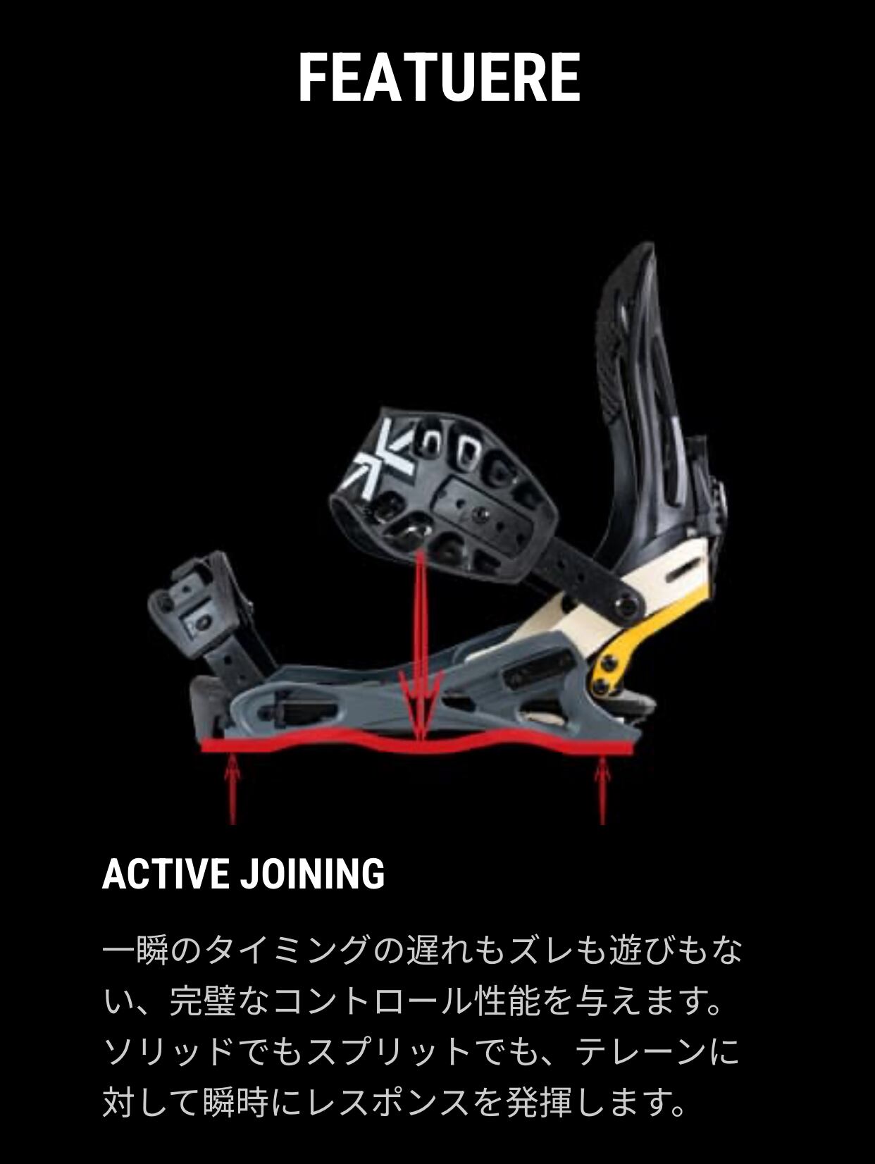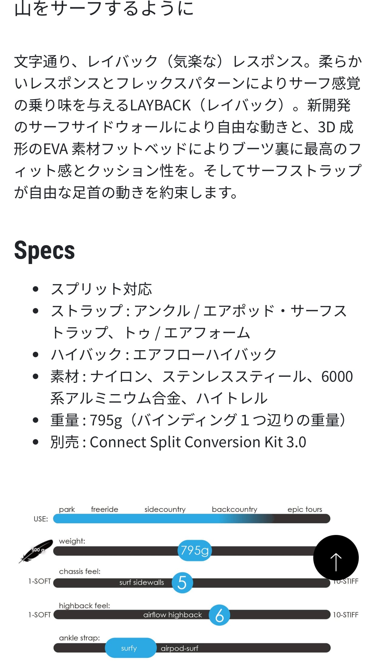 文字通りレイバック(気楽な)レスポンス。柔らかいレスポンスとフレックスパター ンにより、サーフ感覚の乗り味を与えるLAYBACK(レイバック)。新開発のサーフサイドウォールにより自由な動きと、3D 成形のEVA 素材フットベッドによりブーツ裏に最高のフィット感とクッション性を。そしてサーフストラップが、自由な足首の動きを約束します。